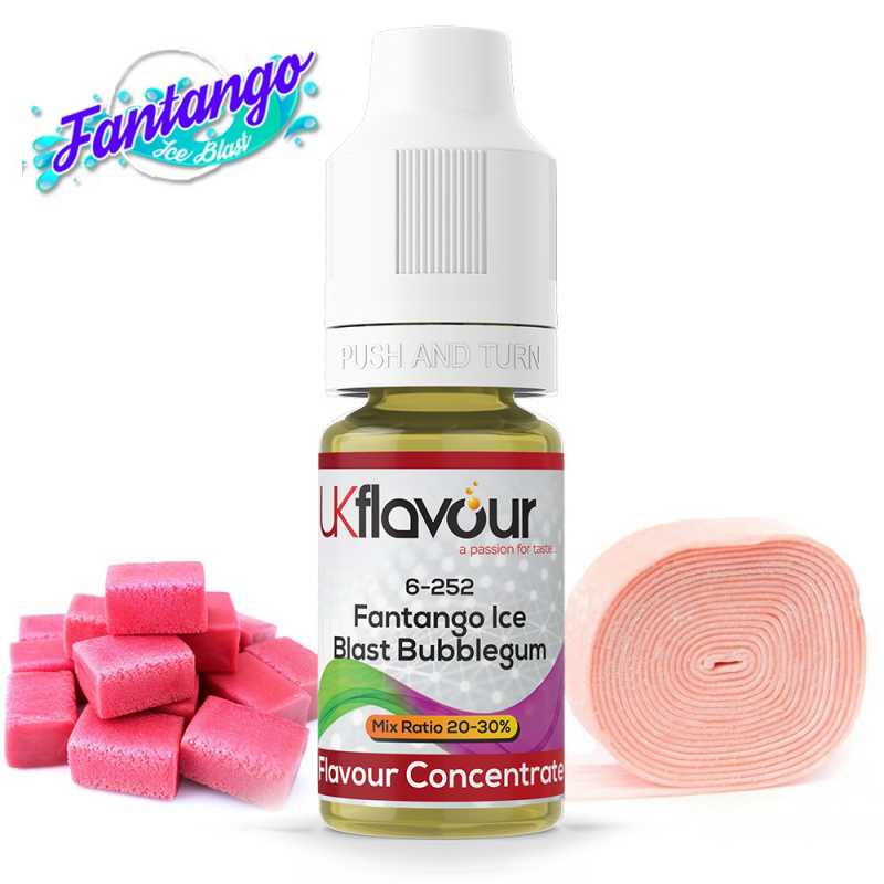 Fantango Ice Blast Bubblegum concentrate. A refreshingly cold fruity Bubblegum. Typical mix ratio around 20-30%
